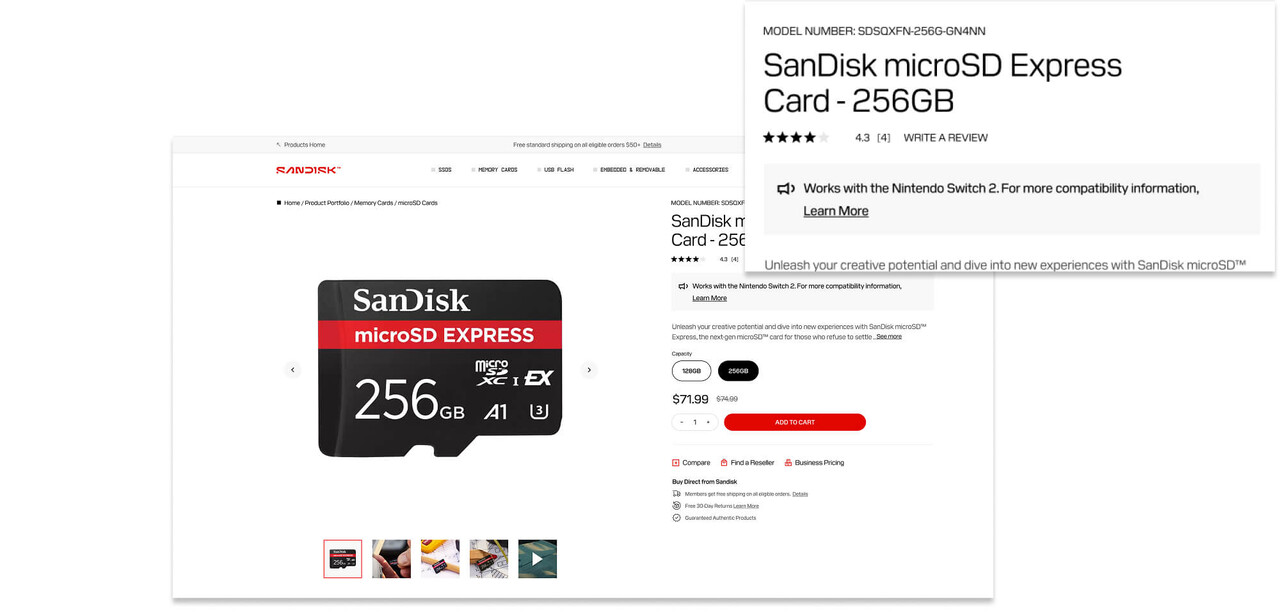 With the Nintendo Switch 2 launching June 5, now’s the time to make sure you’re ready to download all the games your heart desires. SanDisk will also offer official Nintendo-licensed microSD Express cards, featuring fan-favorite designs like the Mario “M” logo—available directly through Nintendo and licensed retailers through July 2026. The licensed OEM microSD Express cards will be in partnership with Nintendo will be Nintendo direct and via its channel partners, boast end-user support by Sandisk and enjoy end-user RMA by Sandisk as if it were a Sandisk retail product. More details coming soon.