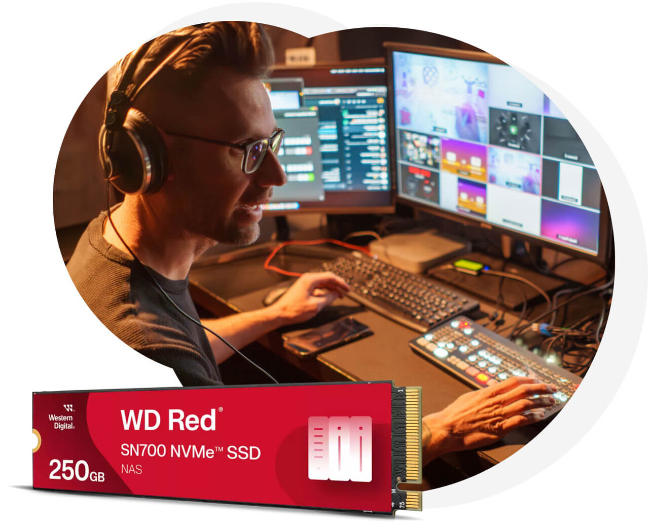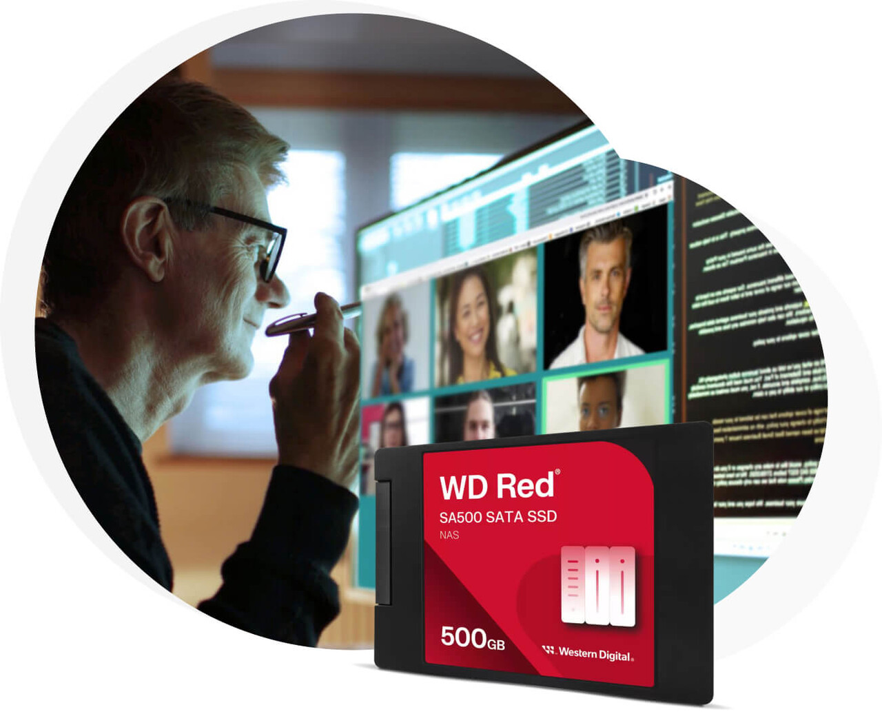 使用 WD Red 內接式 SSD 自訂您的網路連接儲存裝置,該 SSD 可以處理繁重讀/寫負載的全天候操作。