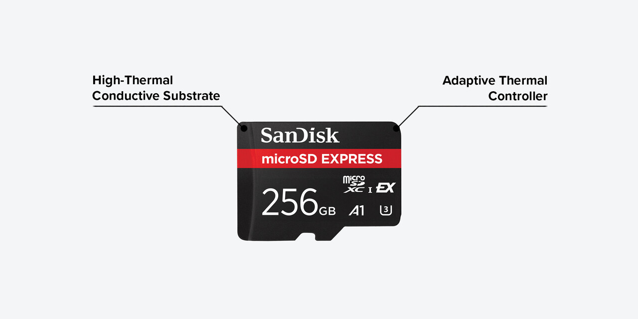 Instead, SanDisk’s team developed ThermAdapt, a new proprietary technology that encases cards in a high thermal conductive substrate that more efficiently dissipates heat. They also built in an adaptive dynamic thermal controller and algorithm to respond to host device specs and mitigate heat accordingly based on their unique requirements.