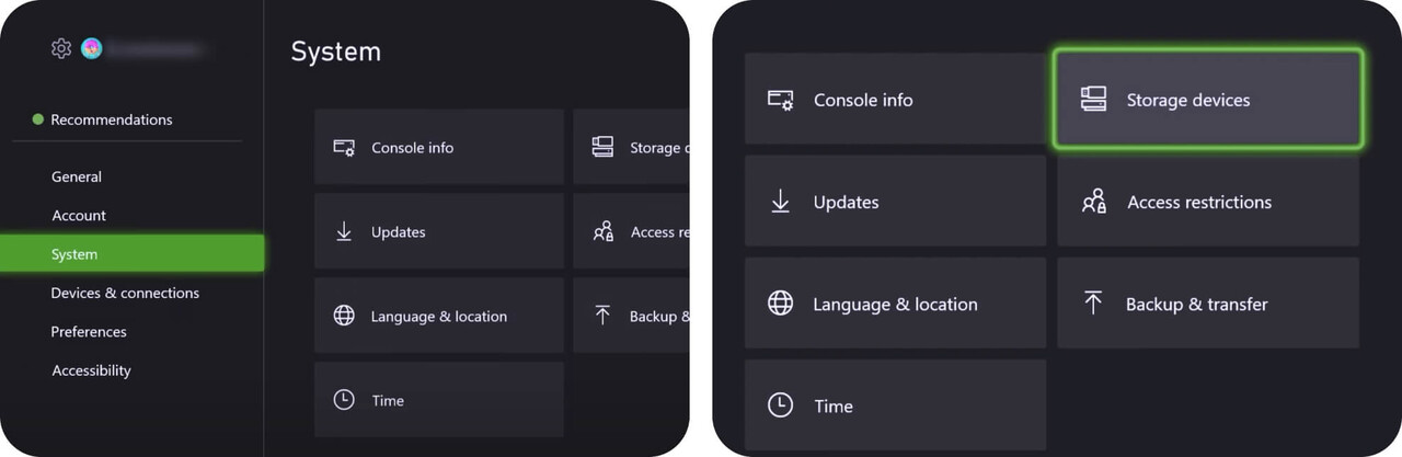 Under System, select Storage devices.